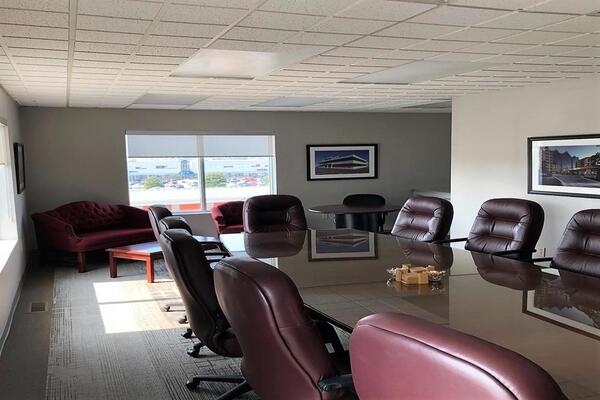 Second-floor walk-up incl: 5 large private offices, 2 board rooms, 2 washrooms, ample storage, and full kitchenette